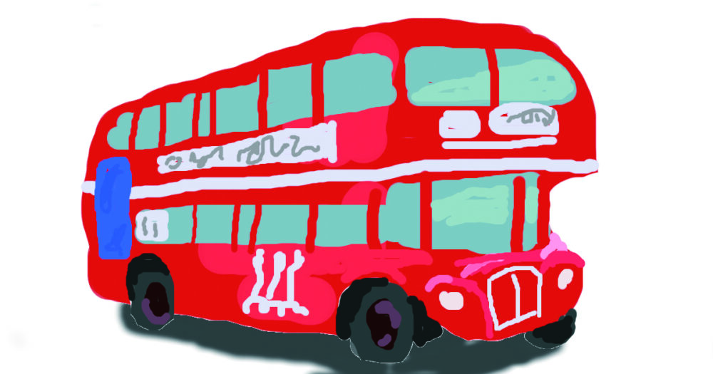 このバスの絵は、私がGIMPを使って初めて描いた作品です。Photoshopと似たような操作感覚で、なんとか描くことができました。現実そっくりにリアルに描くのではなく、まずは楽しんで、自分らしいデジ絵を描くことを心がけてみてください。