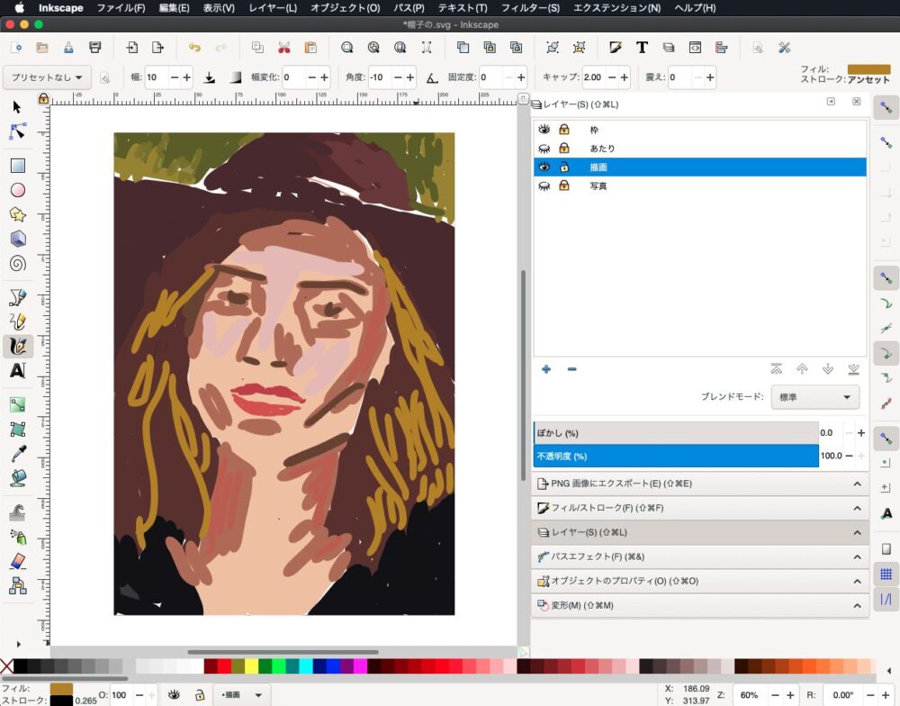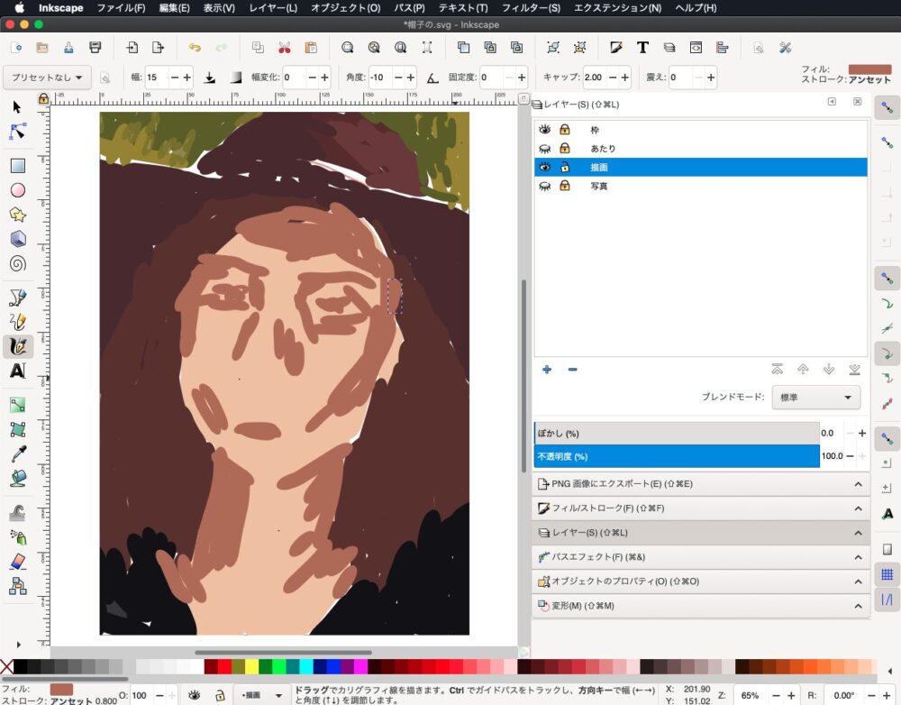 今回も愛用する「Inkscape 1.0」を相棒に選びました。このソフトの「カリグラフィツール」特有の、強弱のある線の走りに、私の指先もようやく馴染んできたようです。