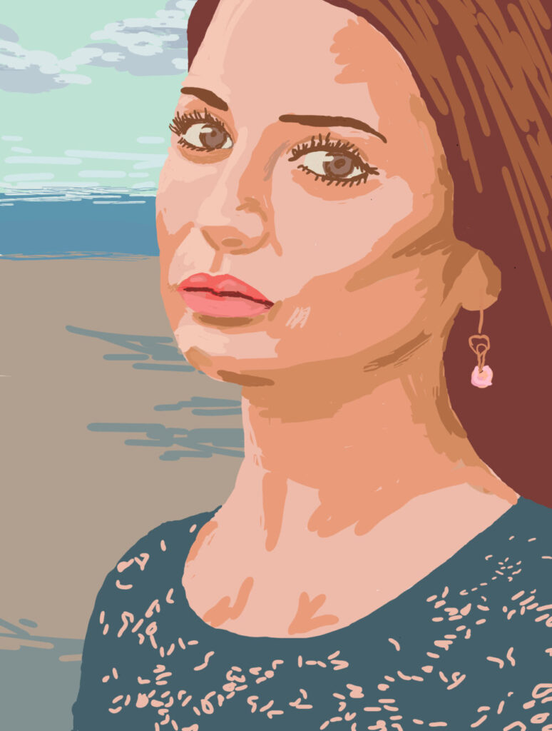 手元にあるロイヤリティフリーの写真には、どこか曖昧な背景の中にこちらを見つめる女性が写っていました。私はこの背景を完全に書き換え、彼女をサンタモニカの海岸へと連れ出すことにしました。現実を再現するのではなく、色調のハーモニーによって「現代的な詩情」を構築していく作業の始まりです。