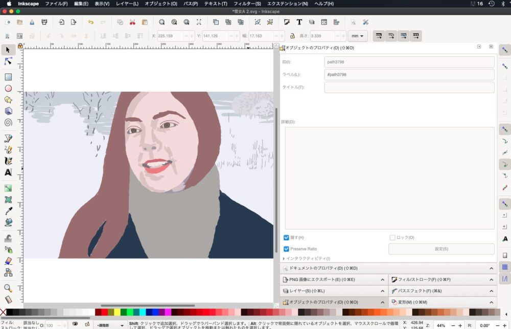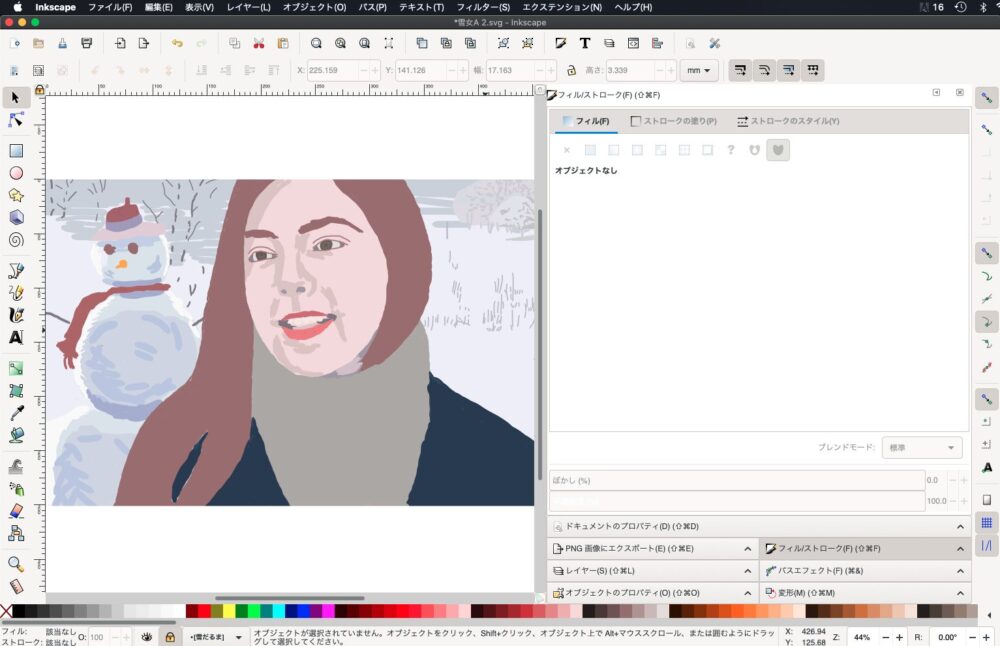 キャンバスサイズは、その場の広がりを感じさせる1708×1138pxのワイドサイズを選択しました。使用したツールは、もはや私の体の一部とも言える「Inkscape 1.0」のカリグラフィツール一本です。