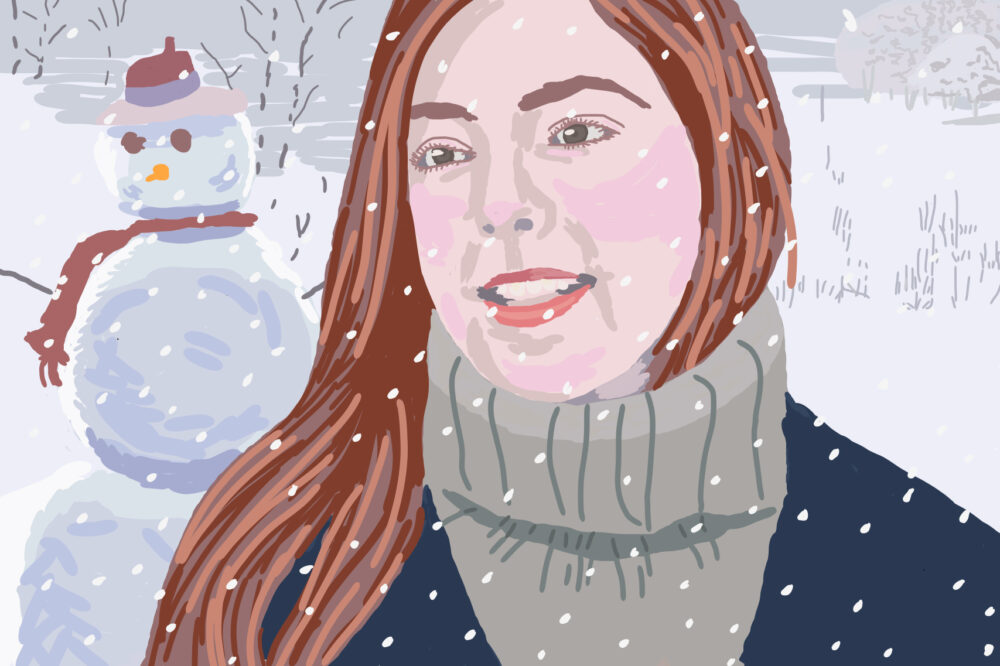 単なる風景描写に終わらせたくなかったのです。彼女が浮かべている微かな微笑みは、自分が作った雪だるまへの愛着なのか。それとも、誰かが残した冬の足跡を見つけて心が温まった瞬間なのか。