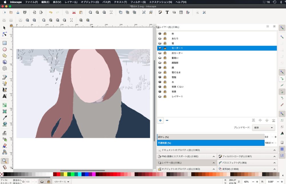 背景を埋める際、私はある「遊び心」を加えました。それは、彼女の傍らに佇む雪だるまです。