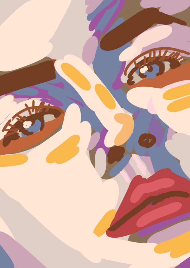 描こうとしているのは、紛れもなく「女性の顔」という具体的なモチーフ。しかし、その根底に流れる精神は、形に縛られない「抽象画」の自由さです。リアリズムに寄せるのではなく、ポップアートのような大胆な構図と色彩を狙いました。