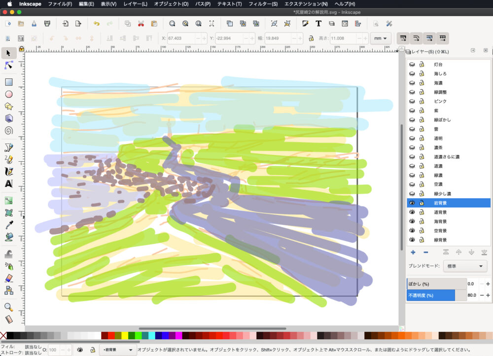 「道背景」「岩背景」という新規レイヤーを作成し、それぞれ描いていきます。