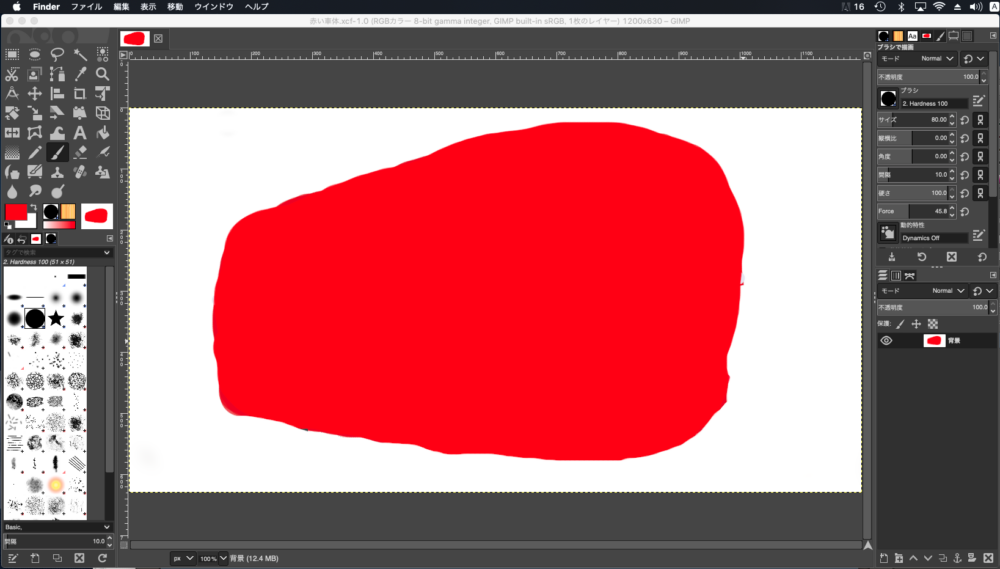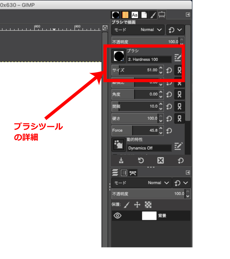 ウィンドウの右のサイドバーにブラシの詳細設定が表示されているので、サイズの欄に80と入力するか、右横にある小さな上下矢印マークを80になるまで押してください。