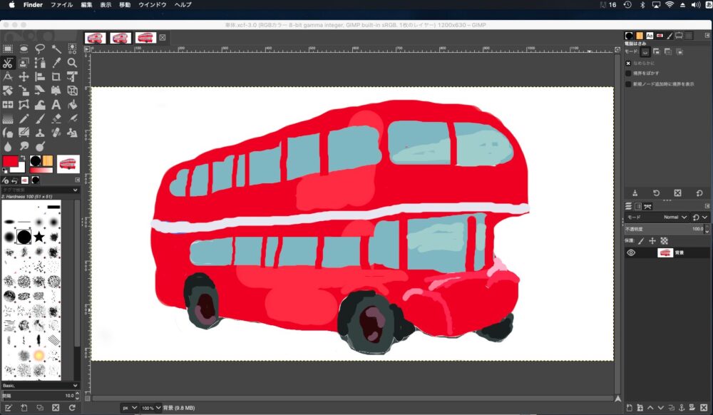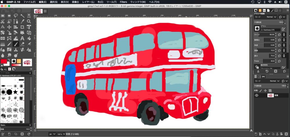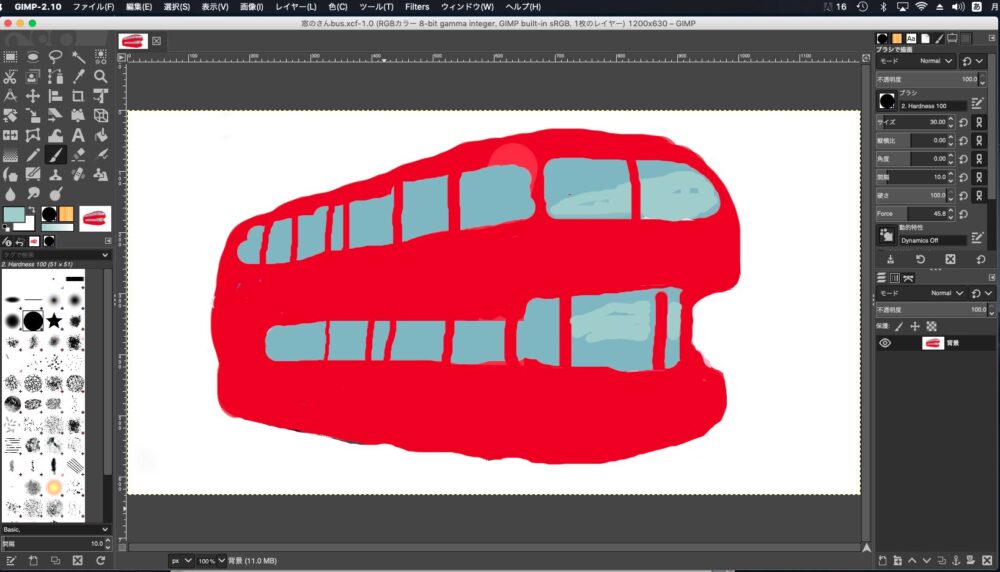 希望の色が選択できましたら、もう一度ブラシツールに持ち替えてバスの外観を描いていきます。はみ出したりしても気にせず、大胆に一気に描いていきましょう。